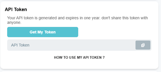To get your JWT API Token, you first need to authenticate to the platform, then go to your [Profile] page and then to the API Token section.