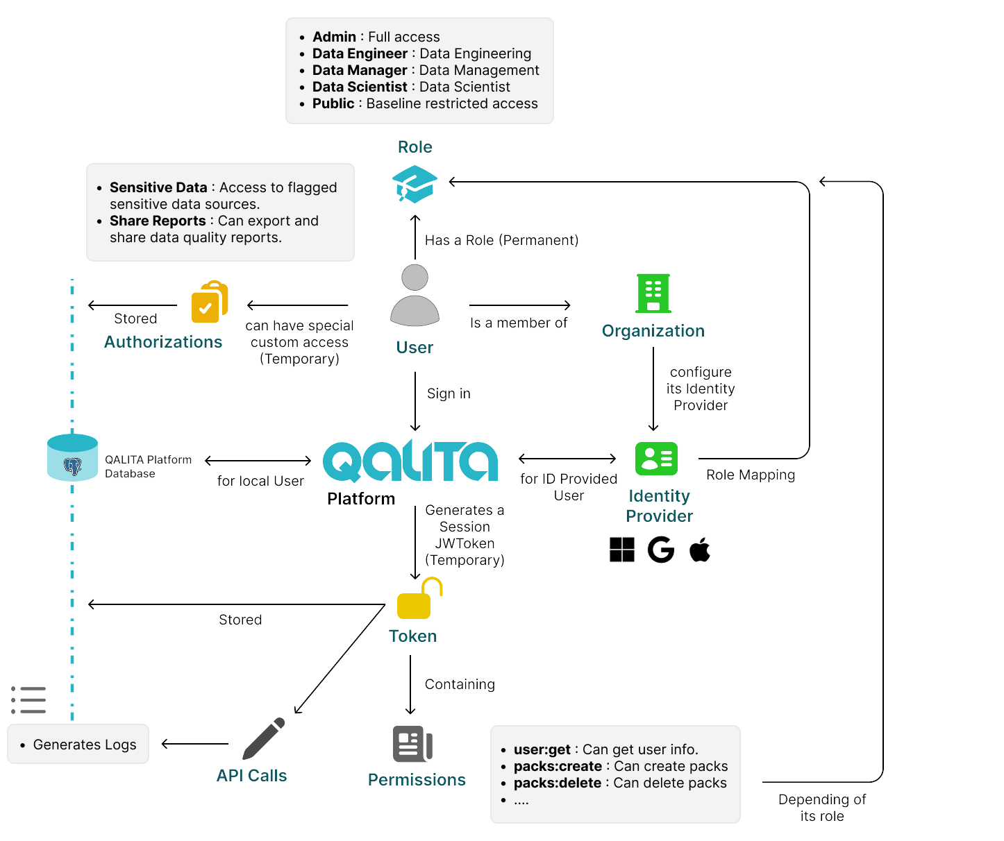 There are different roles in QALITA Platform that allow discrimination of possible actions and access rights.