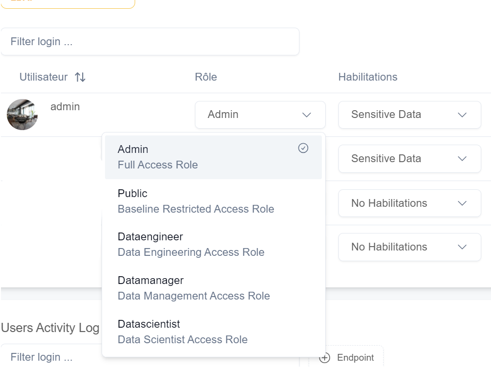 Users on the platform have a role and can have special permissions to manage their access level.