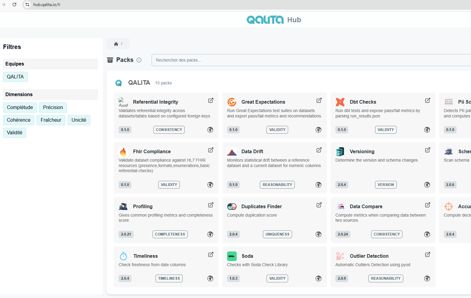 You can find QALITA’s public packs on our GitHub repository. These packs are maintained by QALITA SAS and the community. All contributions are welcome.
