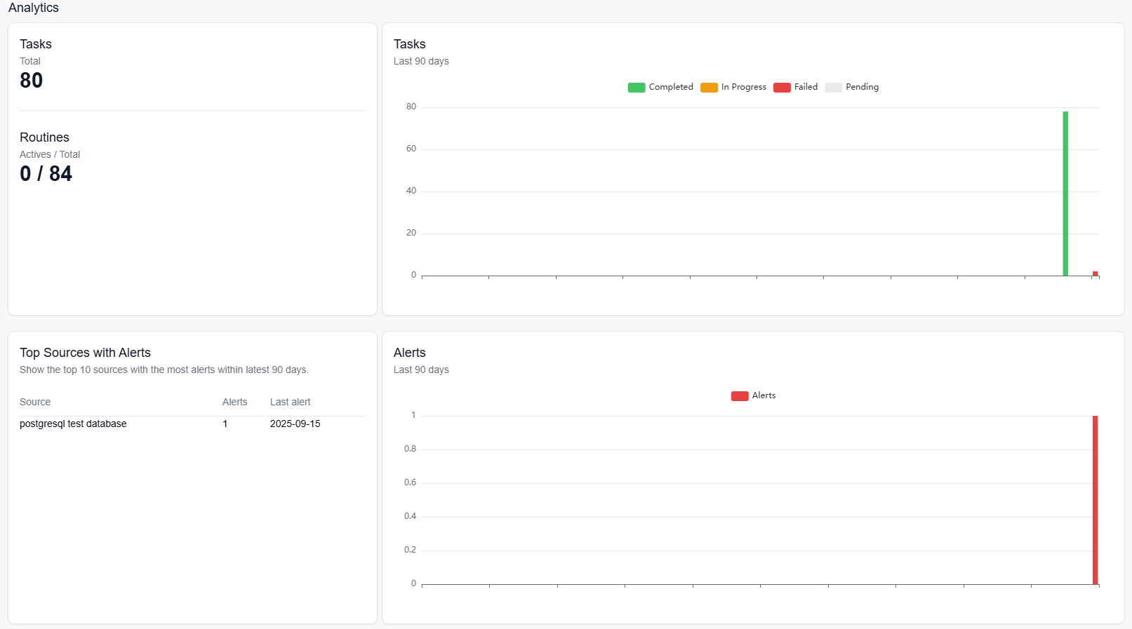 KPI metrics on analytics, Jobs, routines, alerts